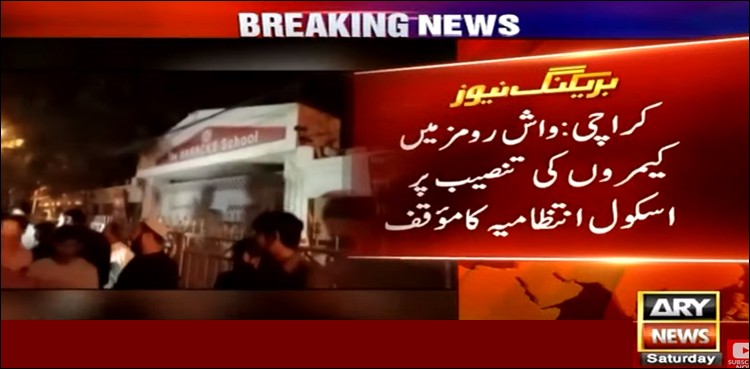 اے آر وائی نیوز کے مطابق کراچی کے نجی اسکول کی انتظامیہ کا کہنا ہے کہ کیمرے واش روم کے بیسن ایریا میں لگائے گئے تھے، کیمرے لگانے کا مقصد تھا کہ لڑکوں اور لڑکیوں کے واش روم الگ رہیں۔