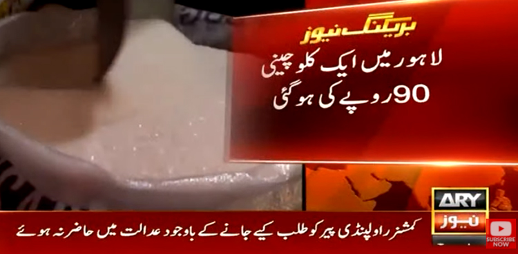 پنجاب کے دارالحکومت لاہور میں چینی کی فی کلو قیمت کم ہوکر 90 روپے تک پہنچ گئی۔