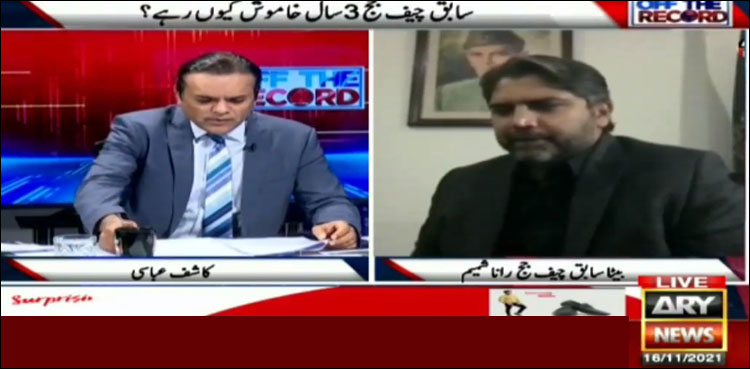 میزبان کاشف عباسی نے احمد حسن رانا نے سوال کیا کہ معاملہ جوڈیشل کونسل میں ہی بھجوانے کا مطالبہ تھا تو صحافی کو کیوں دیا گیا، اس پر انہوں نے کہا کہ رانا شمیم سے پوچھیں انہوں نے صحافی کو حلف نامہ کیوں جاری کیا۔