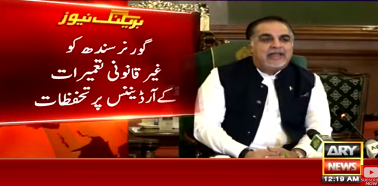 کراچی: گورنرسندھ نے سندھ حکومت کی جانب سے جاری ہونے والے غیرقانونی تعمیرات سے متعلق آرڈیننس پر تحفظات کا اظہار کردیا۔