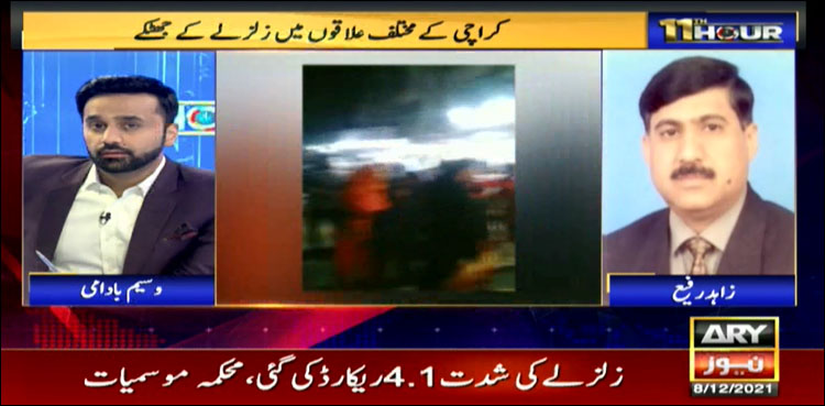 اے آر وائی نیوز کے پروگرام ’الیونتھ آور‘ میں گفتگو کرتے ہوئے ڈائریکٹر محکمہ موسمیات زاہد رفیع نے بتایا کہ زلزلے کا مرکز کراچی ہی ہے، زلزلے کی شدت 4.1 ریکارڈ کی گئی۔