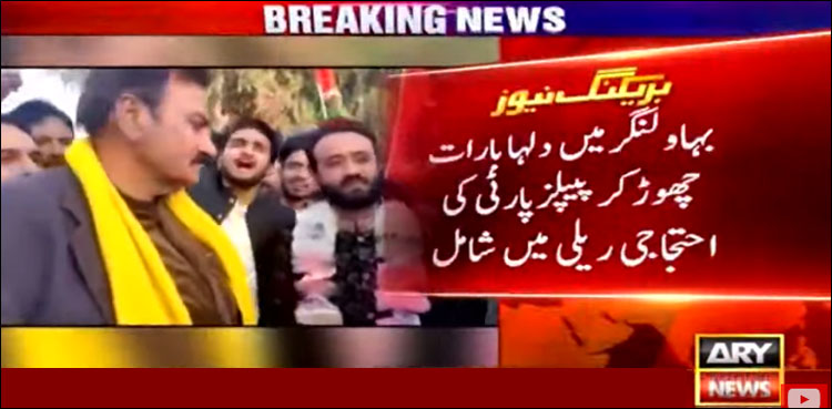 بہاولنگر: پنجاب کے شہر بہاولنگر میں دلہا بارات چھوڑ کر پیپلزپارٹی کی احتجاجی ریلی میں شامل ہوگیا۔