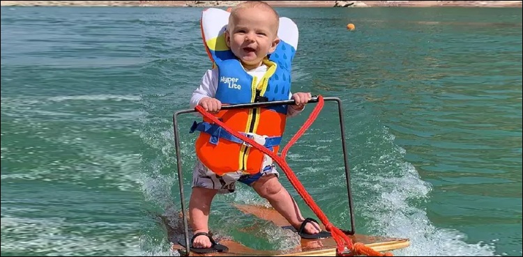 امریکی ریاست یوٹاہ میں 6 ماہ کے بچے نے واٹر اسکیئنگ کرکے دیکھنے والوں کو حیران کردیا۔