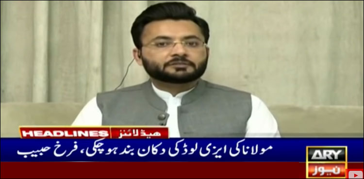 اے آر وائی نیوز کے مطابق وزیر مملکت برائے اطلاعات و نشریات فرخ حبیب نے کہا کہ مولانا فضل الرحمان کو یہ مسئلہ ہے کہ ان کی ایزی لوڈ کی دکان بند ہوچکی ہے۔