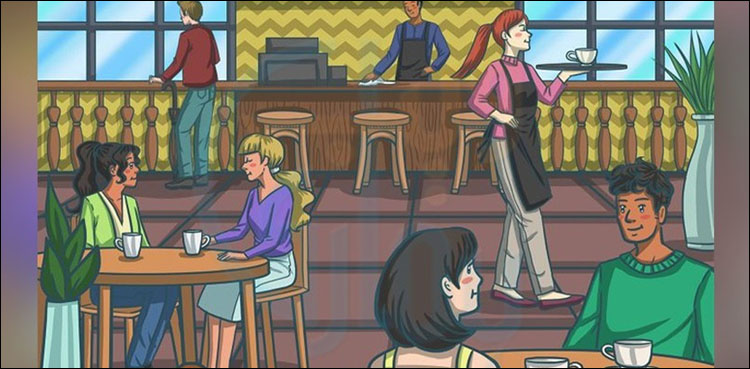 موجودہ تصویر ایک ہوٹل کی ہے جس میں لوگ بیٹھے چائے پی رہے ہیں لیکن اس تصویر میں ایک چھتری موجود ہے آپ کو بتانا ہے کہ وہ چھتری کہاں چھپی ہے؟