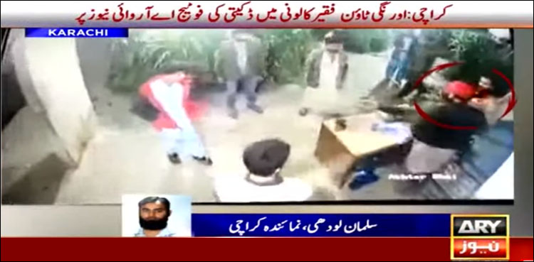 اے آر وائی نیوز کے مطابق کراچی کے علاقے اورنگی ٹاؤن فقیر کالونی میں ڈکیتی کی واردات کے دوران مسلح ڈکیتیوں نے فائرنگ کرکے دکاندار کو زخمی کردیا جس کی ویڈیو سامنے آگئی۔
