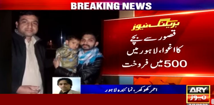 قصور پولیس نے پانچ سو روپے کے عوض فروخت کیے گئے دو سال کے بچے کو چند گھنٹوں میں بازیاب کروالیا۔