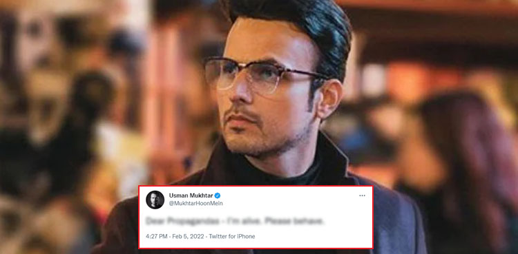 ایک اور ٹویٹ میں عثمان مختار نے کہا کہ ’ پروپیگنڈا کرنے والے اپنی اوقات میں رہیں، میں زندہ ہوں۔