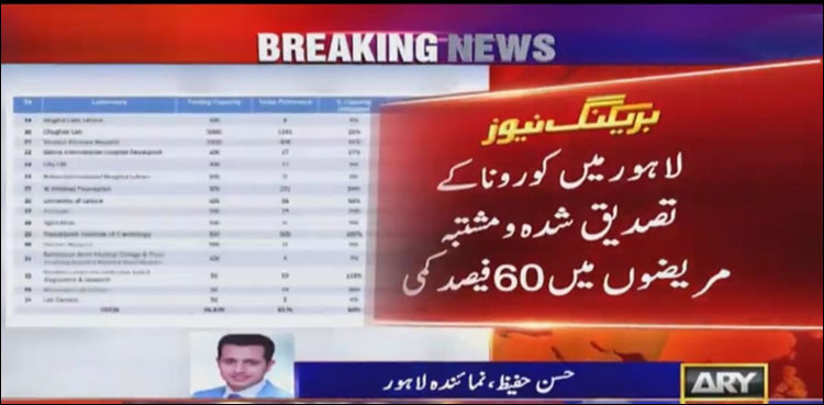تفصیلات کے مطابق محکمہ صحت پنجاب کی ڈیٹاسورس تحقیقاتی رپورٹ سامنے آگئی، جس میں لاہور میں کورونا کے تصدیق شدہ ومشتبہ مریضوں میں 60 فیصد کمی کا انکشاف ہوا۔