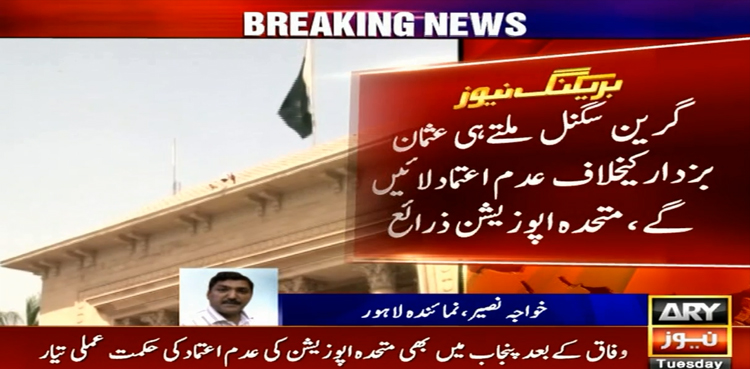 متحدہ اپوزیشن کا کہنا ہے کہ گرین سگنل ملتے ہی عثمان بزدار کے خلاف عدم اعتماد لائیں گے۔