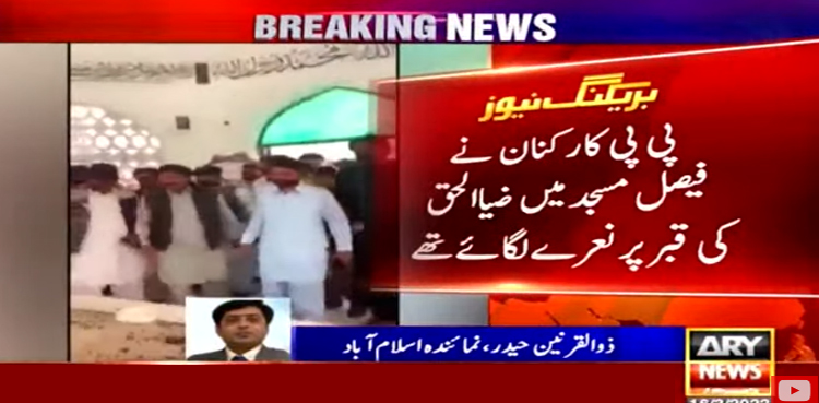 اسلام آباد: سابق صدر اور آرمی چیف ضیا الحق کی قبر پر نعرے بازی کرنے پر پیپلزپارٹی کارکنان کے خلاف مقدمہ درج کرلیا گیا۔