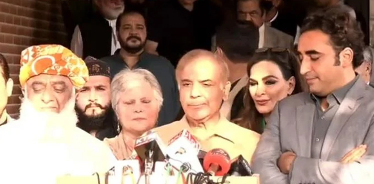 اپوزیشن لیڈر شہباز شریف نے بھی بلاول کے اعلان کی تائید کرتے ہوئے ایوان میں دھرنےکا اعلان کیا ہے، ان کا کہنا تھا کہ اجلاس بلانا اسپیکرکی ذمہ داری ہے، اگر اسپیکر نے ہاؤس کا بزنس نہ چلایا تو ہم اسمبلی ہال میں دھرنے دینے پر مجبور ہوں گے۔