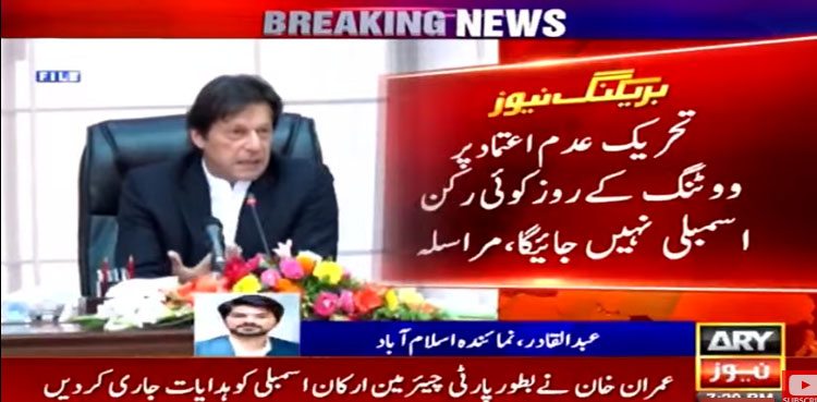 اسلام آباد: تحریک عدم اعتماد کے معاملے پر وزیراعظم عمران خان نے بطور پارٹی چیئرمین ارکان اسمبلی کو ہدایات جاری کردی۔