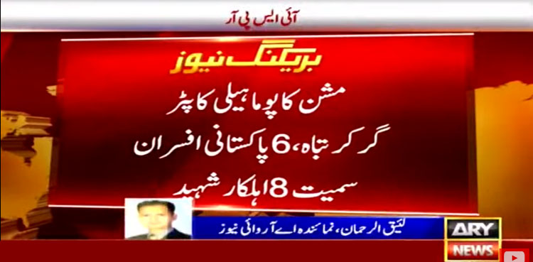 آئی ایس پی آر کے مطابق حادثے میں 6 پاکستانی افسران سمیت 8 اہلکار شہید ہوگئے۔