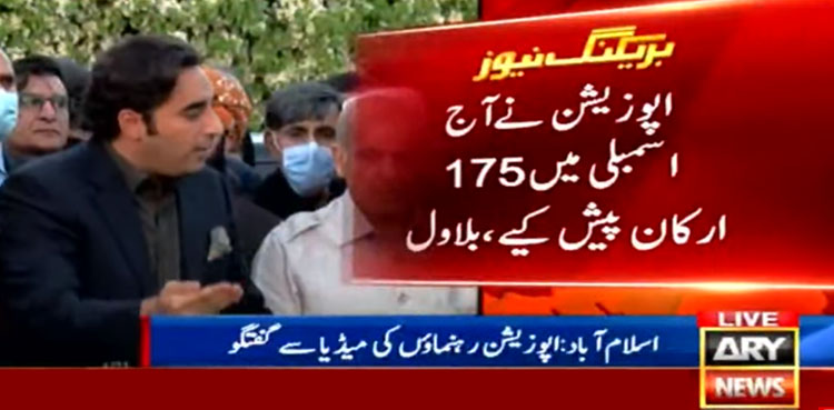 اسلام آباد: چیئرمین پیپلزپارٹی بلاول بھٹو زرداری کا کہنا ہے کہ اپوزیشن نے آج اسمبلی میں 175 ارکان کھڑے کرکے اپنی اکثریت ثابت کردی۔