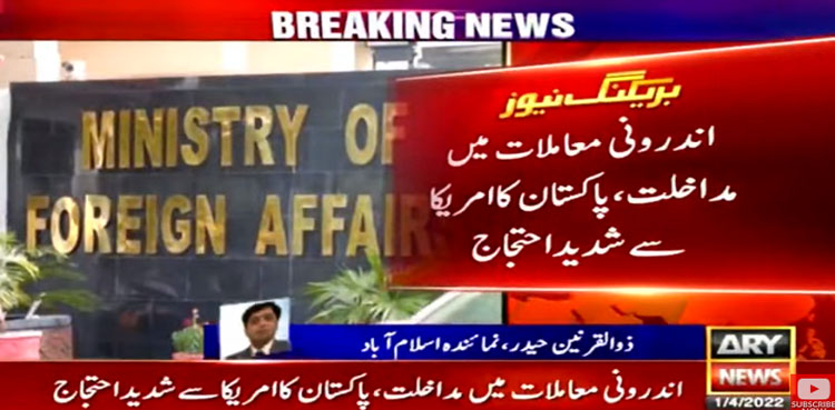 اسلام آباد: اندرونی معاملات میں مداخلت پر پاکستان نے امریکا سے شدید احتجاج کیا ہے۔