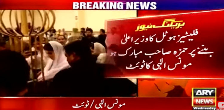 مونس الٰہی نے سماجی رابطے کی ویب سائٹ ٹویٹر پر حمزہ شہباز پر تنقید کرتے ہوئے لکھا کہ ’فلیٹیز ہوٹل کا وزیر اعلیٰ بننے پر حمزہ صاحب مبارک ہو۔‘