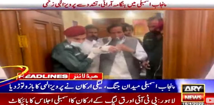 اے آر وائی نیوز کے مطابق مسلم لیگ ق کے سربراہ چوہدری پرویز الٰہی نے میڈیا سے گفتگو کرتے ہوئے کہا کہ حمزہ شہباز کے کہنے پرسب دوڑے آئے اورمجھ پرحملہ کیا۔