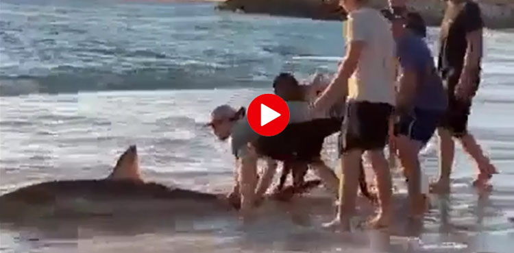 غیرملکی خبررساں ادارے کی رپورٹ کے مطابق گزشتہ دنوں آسٹریلیا کے کوئنز راکس ساحل پر شارک مچھلی آکر پھنس گئی اور جب لڑکوں کے ایک گروپ نے اسے مشکل میں دیکھا تو اس کی مدد کرنے کا فیصلہ کیا۔