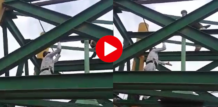 ویڈیو میں دیکھا جاسکتا ہے کہ غربت سے تنگ شخص نے پیڈسٹرن برج سے کودنے کی کوشش کررہا ہے۔