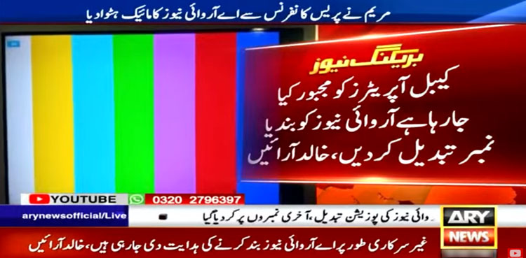 واضح رہے کہ کراچی کے مختلف علاقوں میں اے آر وائی نیوز کی نشریات بند کردی گئی ہیں یا پھر آخری کے نمبروں پر ڈال دیا گیا ہے۔