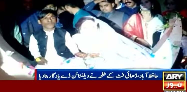 اے آر وائی نیوز کے مطابق حافظ آباد کا ڈھائی فٹ کا طلحہ لاہور سے تین فٹ کی گریجویٹ دلہن لے آیا، پستہ قد جوڑے کی شادی دھوم دھام سے ہوئی۔