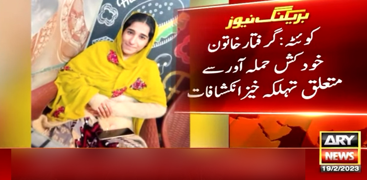 کوئٹہ کے سیٹلائٹ ٹاؤن سے گرفتار کی جانے والی کالعدم تنظیم بلوچ لبریشن فرنٹ (بی ایل ایف) کی خاتون خودکش حملہ آور سے متعلق تہلکہ خیز انکشافات سامنے آگئے۔