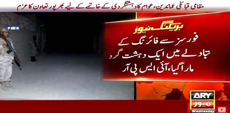 آئی ایس پی آر کا بتانا ہے کہ فورسز سے فائرنگ کے تبادلے میں ایک دہشت گرد مارا گیا ہے۔