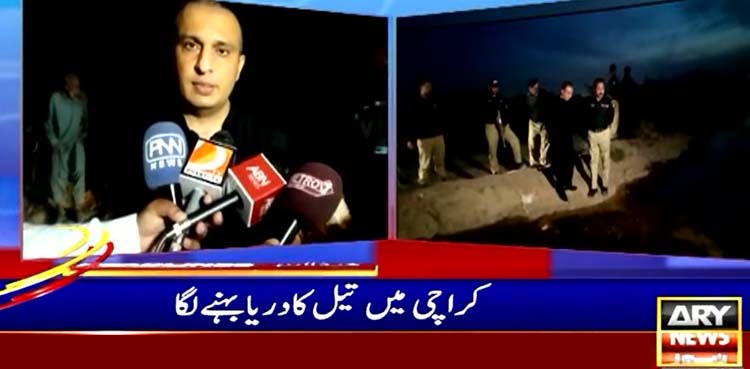 اے آر وائی نیوز کے مطابق کراچی کے علاقے شاہ لطیف ٹاؤن جام کنڈا میں سرکاری آئل لائن لیک ہوئی جس کی وجہ سے لاکھوں لیٹر تیل نکل کر علاقے میں بہہ رہا ہے۔