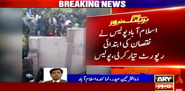اے آر وائی نیوز کے مطابق اسلام آباد پولیس نے نقصان کی ابتدائی رپورٹ تیار کرلی ہے جس میں بتایا گیا ہے کہ پیشی کے دوران ڈیڑھ کروڑ سے زائد مالیت کی گاڑیاں توڑی گئیں۔