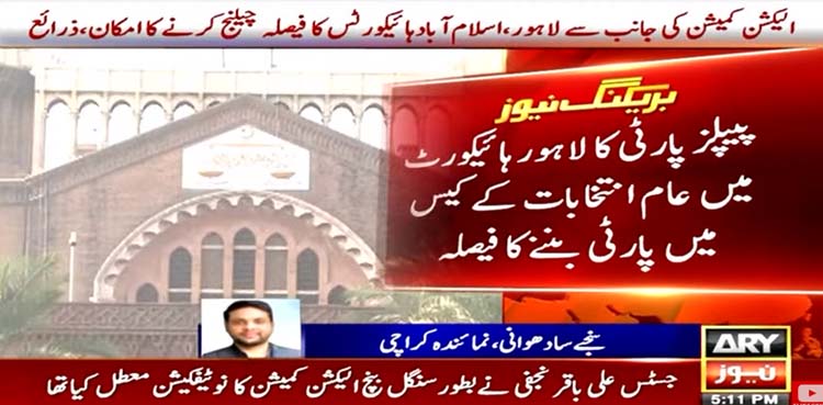لاہور: پیپلزپارٹی اور ن لیگ کا لاہور ہائیکورٹ میں عام انتخابات کے کیس میں فریق بننے کا فیصلہ کرلیا ہے۔