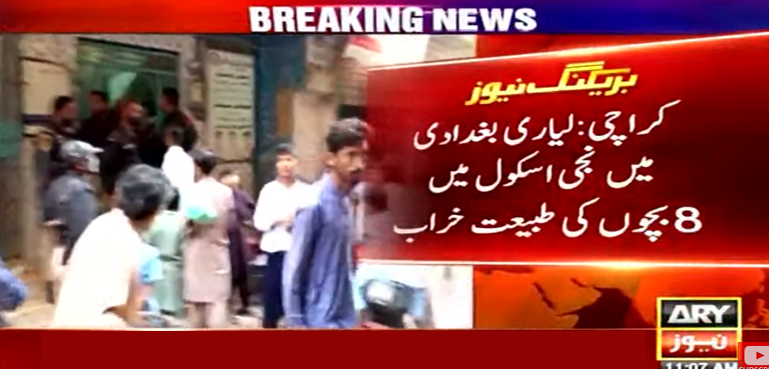 اے آر وائی نیوز کے مطابق شہر قائد کے علاقے لیاری بغدادی میں واقع ایک نجی اسکول میں 8 بچوں کی طبیعت اچانک غیر ہوگئی اور وہ بیہوش ہوگئے جن کو بیہوشی کی حالت میں ہی اسپتال منتقل کیا گیا۔
