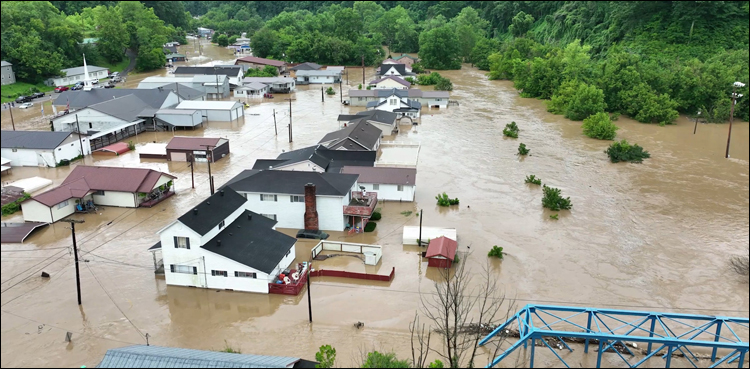 کینٹکی کے گورنر نے ریاست میں ایمرجنسی نافذ کر دی، شاہراہیں تالاب بنی ہوئی ہیں، ریاست کی ناٹ کاؤنٹی کا مرکزی علاقہ سیلاب سے سب سے زیادہ متاثرہوا۔