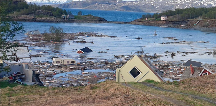 فرانسیسی خبر رساں ادارے کی رپورٹ کے مطابق تین روز قبل یورپی ملک ناروے میں سمندر کنارے واقع ایک گاوٗں کا بڑا حصّہ دھیرے دھیرے کھسک کر سمندر کی جانب بڑھا اور چند لمحوں میں سمندر برد ہوگیا۔