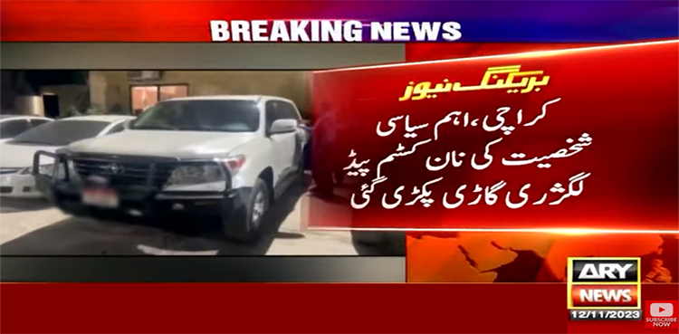 حکام کے مطابق کراچی میں کسٹم انٹیلی جنس نے اہم سیاسی شخصیت کی نان کسٹم پیڈ لگثری گاڑی پکڑ لی۔