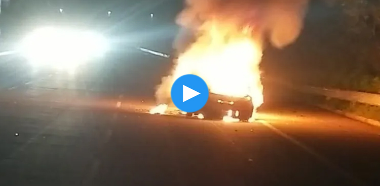 کار میں زندہ جلتا ہوا شخص (کمزور دل حضرات ویڈیو نہ دیکھیں)