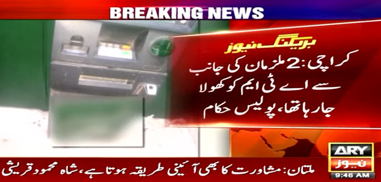 ملزمان اے ٹی ایم کا لاک توڑ کر کیش ٹرے تک پہنچ چکے تھے، بینک سیکیورٹی نے کنٹرول آفس سے فون کر کے پولیس کو آگاہ کیا۔