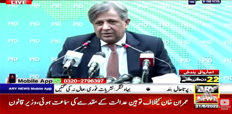 وفاقی وزیر قانون اعظم نذیر تارڑ نے کہا ہے کہ توہین عدالت کے مرتکب شخص کو سزا دیئے بغیر چھوڑا نہیں جاسکتا۔