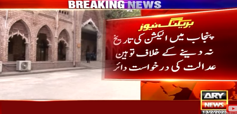اے آر وائی نیوز کے مطابق لاہور ہائیکورٹ کی جانب سے صوبہ پنجاب میں الیکشن شیڈول جاری کرنے کے واضح حکم کے باوجود انتخابات کا شیڈول جاری نہ کرنے پر گورنر پنجاب بلیغ الرحمٰن اور الیکشن کمیشن کے خلاف عدالت عالیہ میں توہین عدالت کی درخواست دائر کر دی گئی ہے۔