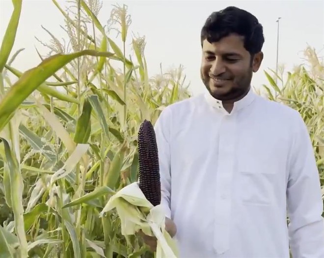 سعودی کاشت کار کا کہنا ہے کہ پانچ سال سے مختلف رنگوں کے بھٹے اگا رہا ہوں، ابتدا میں نارنجی اور سفید رنگ کی فصل اگانے میں کامیابی ملی۔