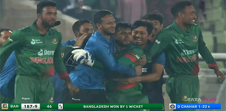 میرپور: بنگلادیش نے بھارت کو پہلے ون ڈے میں سنسنی خیز مقابلے کے بعد شکست دے کر تین میچوں کی سیریز میں ایک صفر کی برتری حاصل کر لی۔