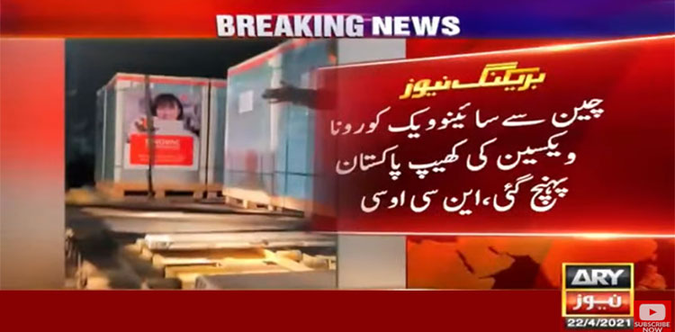 چین سےسائینوویک کورونا ویکسین کی کھیپ پاکستان پہنچ گئی۔