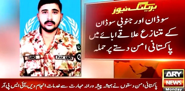 سوڈان اور جنوبی سوڈان کے متنازع علاقے ابائے میں پاکستانی امن دستے پر حملہ میں ایک سپاہی شہید ہو گیا۔