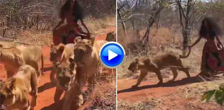 افریقی جنگل میں شیروں کے ساتھ رہنے والی خاتون؟ ویڈیو وائرل