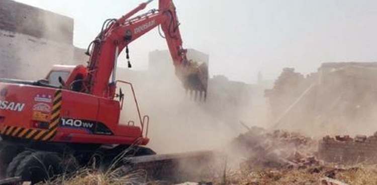 سیاسی افراد کی جانب سے گرلز اسکول کی اراضی پر قبضہ کرکے یہاں پلازہ تعمیرکیا گیا تھا، پلازہ کے اطراف کی جگہ پر دس سےزائد دکانیں بھی بنائی گئی تھیں، میونسپل کارپوریشن کے عملے نے پولیس نفری کی موجودگی میں تجاوزات گرائیں، سرکاری زمینیں واگزار کرانے کے لئے آپریشن رات بھرجاری رہا،اس دوران غیرقانونی تعمیر پلازہ اور دکانوں کو مسمار کیا گیا۔