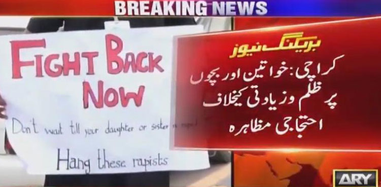 کراچی : سول سوسائٹی نے بچوں و خواتین پر ظلم و زیادتی کے واقعات کی مذمت کرتے ہوئے جنسی درندوں کو سرعام پھانسی دینے کا مطالبہ کردیا۔