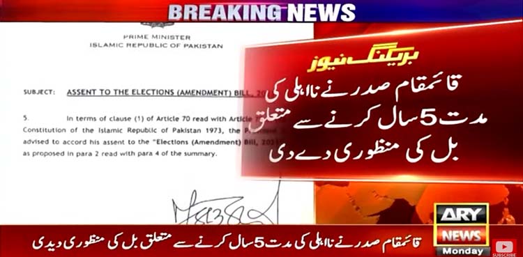 بل منظوری کے بعد انتخابات کی تاریخ دینے کا اختیار صدر سے الیکشن کمیشن کو منتقل ہوگیا ہے۔