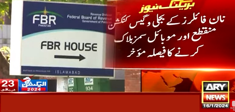 اے آر وائی نیوز کو فیڈرل بورڈ آف ریونیو (ایف بی آر) ذرائع سے ملنے والی اطلاعات کے مطابق ملک میں ٹیکس چوروں کے بجلی اور گیس کے کنکشز منقطع اور موبائل فون سمز کو بلاک کرنے کا فیصلہ موخر کر دیا ہے جس کی وجہ نان فائلز کے خلاف ایکشن لینے سے قبل انکم ٹیکس جنرل آرڈر تیار نہ ہونا بتائی گئی ہے۔
