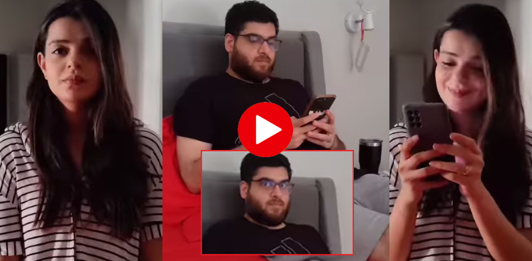 وائرل ویڈیو میں دیکھا جاسکتا ہے کہ ’صرحا خوشی خوشی اپنا استعمال فون استعمال کررہی ہیں لیکن جیسے ہی ان کی نظر شوہر لالہ عمر کی طرف پڑتی ہے تو وہ موبائل فون سائیڈ میں پھینک دیتے ہیں۔