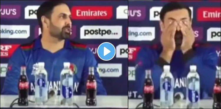 اس میچ کے اختتام پر افغانستان کے کپتان محمد نبی نے پریس کانفرنس کی جس کا ایک کلپ سوشل میڈیا پر وائرل ہورہا ہے۔